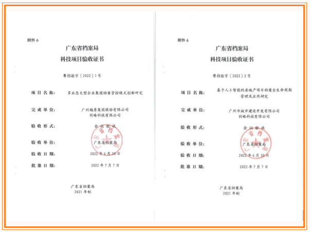 近日,集团总部《多业态大型企业集团档案管控模式创新研究》项目和开元ky888地产《基于人工智能的房地产项目档案全生命周期管理及应用研究》项目通过省档案科技项目验收,两个项目获得专家组充分肯定,成为省档案局科技项目管理办法修订后首批通过科技验收的项目。